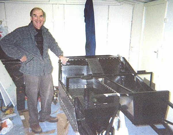My Dad with the car having put the rear axle on. He's not actually a psycho, he's just grimacing from the pain of lifting the rear axle ;-)