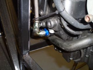 stressing the hose at full lock on either side. The flexis are made up from the Euroquip fittings available from Rally Design. They're extremely easy to make up, requiring no specialist tools - just a hacksaw and some spanners. |