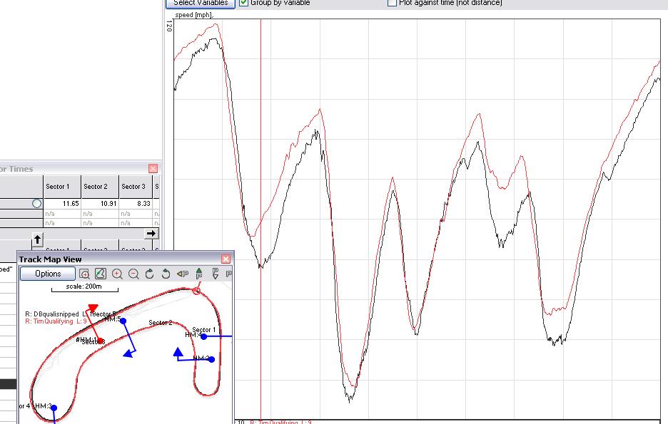 (my fastest qualifying lap and Tim's), it's easy to see where the differences are. The graph shows our respective