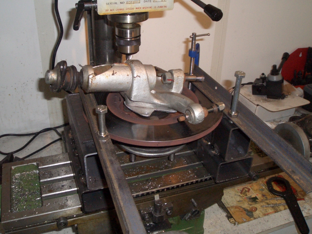(i.e. the upright) in place to ensure that the mounting faces would end up parallel with the disc. The key line
